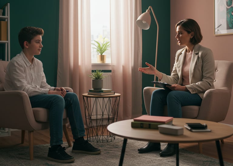 Espaço seguro e de confiança, onde o adolescente pode ser escutado sem julgamento. O foco é desenvolver recursos internos para lidar com conflitos emocionais, pressão escolar, identidade e relações sociais.